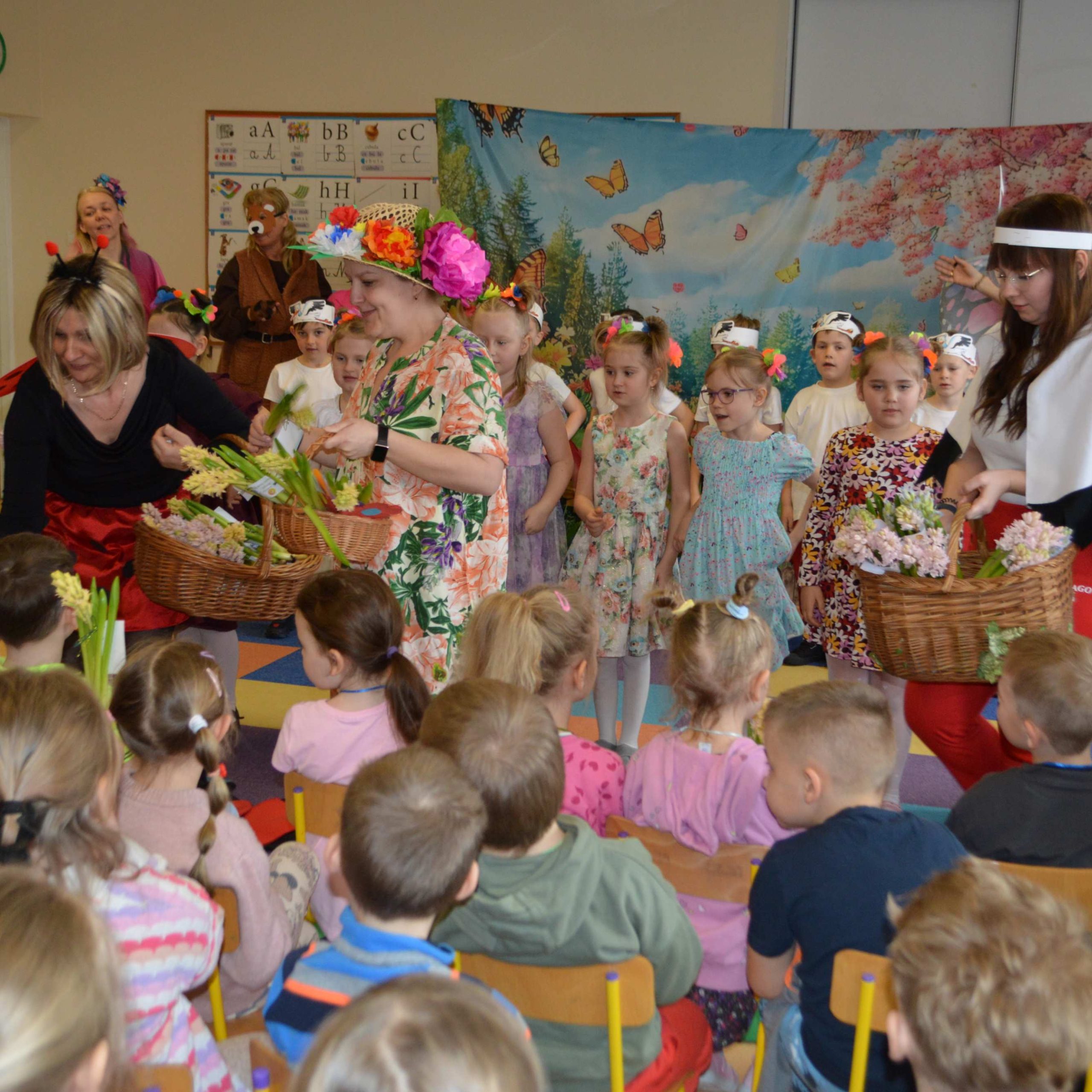 Powitanie Wiosny w Bajeczce, to dziś wielka niespodzianka! Pracownicy przedszkola i dzieci z grupy Kotki przygotowali wspaniałe, wesołe, kolorowe przedstawienie. A Pani Wiosna obdarowała – dzięki wsparciu gospodarstwa ogrodniczego ROSA-NOVA – wszystkie dzieci pięknymi hiacyntami. Ogromne BRAWA dla przedszkolnych artystów!